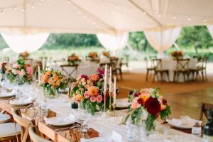 Morgan and Nathan’s wedding was a magical realization of Morgan’s garden-themed vision. The wedding ceremony took place underneath the willow tree, with guests overlooking the sweet stone cottage. It was Morgan and Nathan-perfect. Working with Sincerely Ginger events planners and 307 Events Decor technicians, they had a large tent prepared with charming guest seating for appetizers and cocktails immediately following the ceremony and Catering by Kelly’s designed a beautiful hors-d’oeurve spread in the nearby barn lounge.